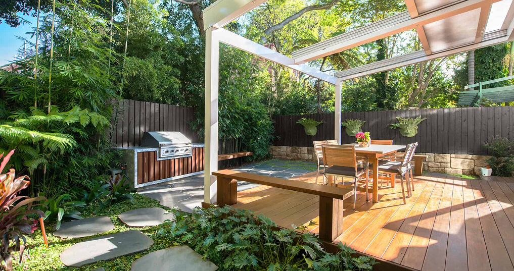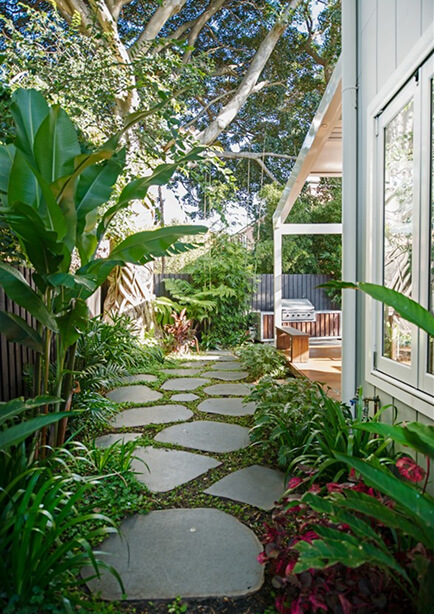 The team at Stone Lotus Landscapes specialise in creating bespoke outdoor spaces that enhance the character of every home. For the 2016 Cammeray project, we designed a lush tropical garden featuring broad-leaf plants and meandering pathways, perfectly complementing the Hamptons-inspired design of the newly built home.